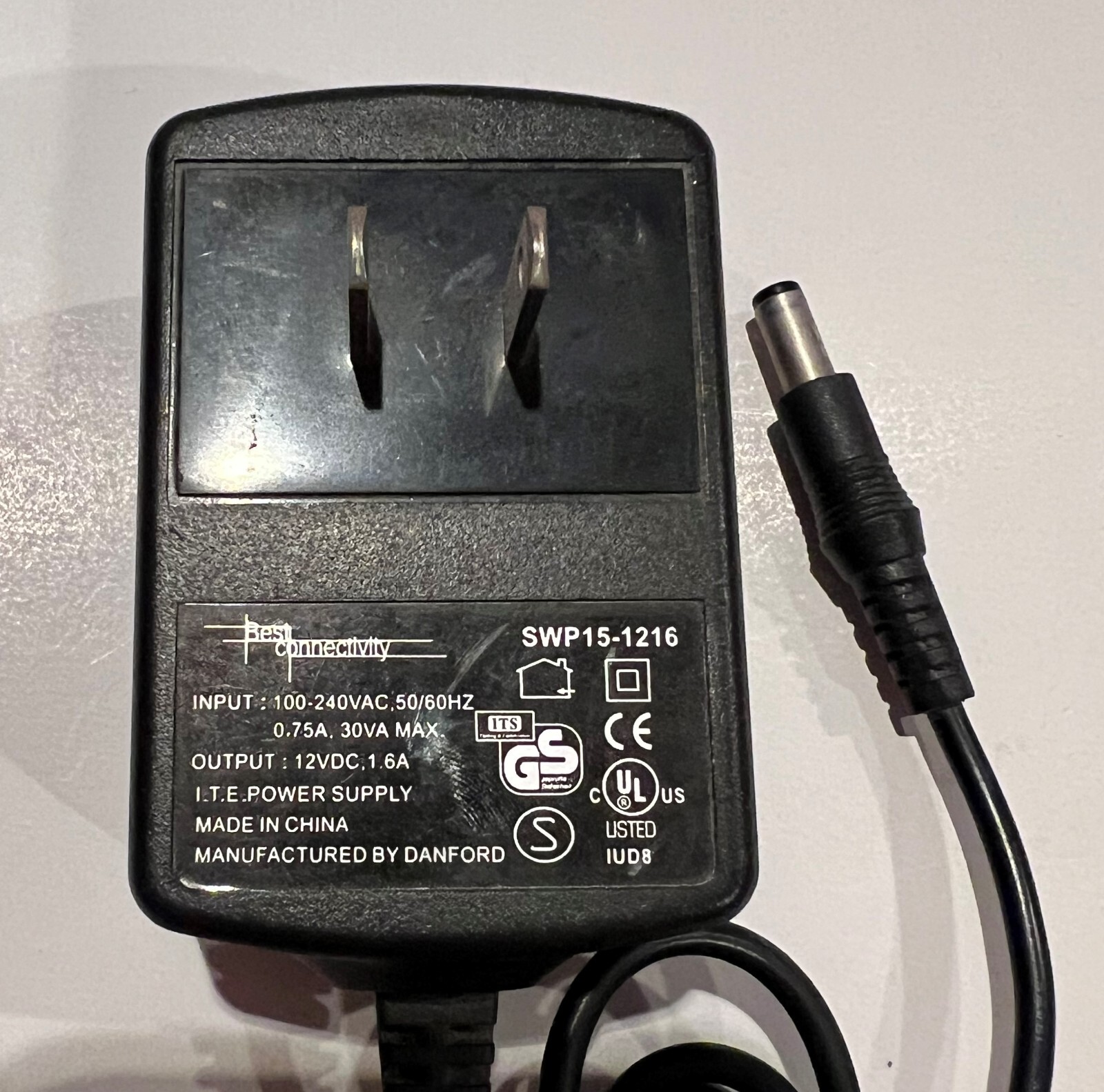 BEST CONNECTIVITY SWP15-1216 Adapter 240V 60Hz 0.75A 30VA, 12VDC 1.6A