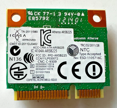 Dell DW1703 Wi-Fi Bluetooth Wireless Mini PCI-E Card CN-0FXP0D